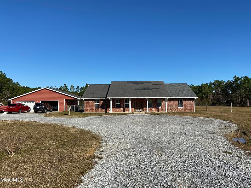 Great Location in Vancleave - Easy access to I-10 and Hwy 57, this brick ranch style home is perfect for horse and animal lovers. Property consist of 2037 SF home, 4.52 acres, has fenced and cross fenced pastures, nice barn with three large stalls, corral and tack room as well as a two car garage. The home has open living area with modern style kitchen with stainless appliances. Master suite has two walk in closets, ceramic tile shower and is spacious. The private but convenient location allows for easy access to local employment centers, shopping centers, medical facilities and restaurants. Great place to have your country setting within minutes to local amenities.