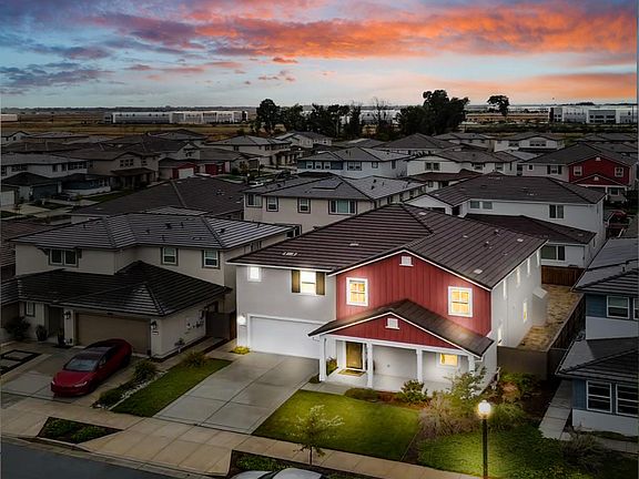 Stunning 5BD + loft, 3BA home in the desirable Northlake community! Nearly 3,104 sq. ft. of modern living with leased solar and designer upgrades throughout. The open-concept layout features a gourmet kitchen with quartz countertops, subway tile backsplash, oversized island, stainless steel GE appliances, and Monogram fridge & range. A full bedroom and bath downstairs offer flexibility for guests or office use. Upstairs includes a spacious loft and a luxurious primary suite with retreat, soaking tub, dual sinks, and walk-in closet. Enjoy a beautiful backyard with a covered California room, fireplace, and lush landscaping, perfect for entertaining. Finished EV-ready garage with tankless water heater. Experience resort-style Northlake amenities: lake, parks, trails, pools, and top-rated schools. Easy access to Freeway 99. Conveniently located just minutes from Downtown Sacramento and Sacramento International Airport, offering exceptional accessibility for commuters and travelers alike.