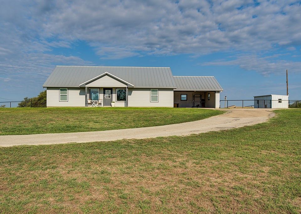 Look here! 20 acres with some of the most amazing views in Parker County. This 3 bedroom 2 bath home is situated on 20 acres and has an open concept kitchen, living, dining, and breakfast area. The newly constructed 2800 sq foot shop is spray foam insulated and has electricity to it. The shop and the barns have a separate entrance making it easy to access. There is a slab behind the house that also has a septic and electricity ran to it where you could easily move in a cabin for guests or maybe rental income. Come enjoy your morning coffee on the back porch that over looks the beautiful land! This place has a lot to offer!