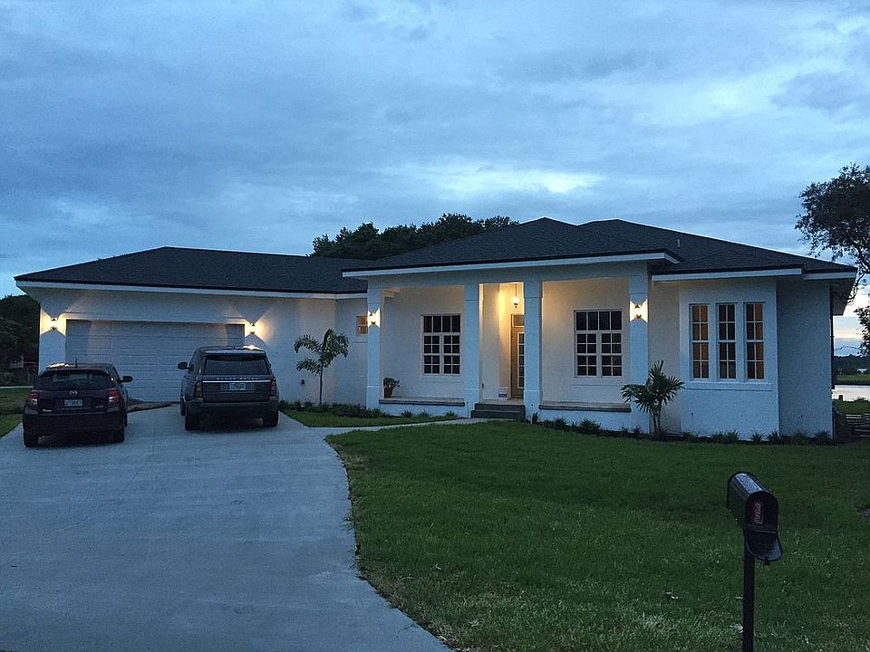 This waterfront four bedroom three bath has plenty of space. Two masters with a large office/den with water views. Concrete block new home built 2015. Open concept. Tile floors, high ceilings. Trace ceiling in living room.