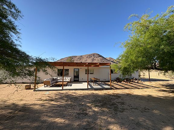 Recently remodeled three bed, two bath home at the foot of Goat Mountain in Landers is situated on 5 acres with mature landscaping, Joshua Trees and a fenced in yard. The floor plan is an ideal setup with the primary bedroom on one side of the house and a guest room and office on the other with its own bathroom. Home can be rented for a few months or longer, negotiable on length.