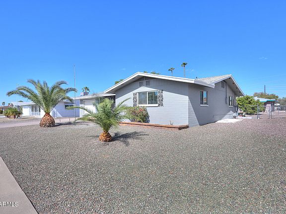 FRESHLY PAINTED 2 bedroom / 2 bathroom with a bonus room (addition) and an enclosed Arizona Room. Located in Dreamland Villa (55+ community). NO CARPET. Tile / laminate wood flooring throughout. ENCLOSED 1 CAR GARAGE w/separate LAUNDRY Room. Dining space off the kitchen. Master bedroom has walk in closet and bathroom. BEAUTIFULLY Landscaped front and back. Large backyard, plenty of space to enjoy. Plus a shed. Located in the heart of Mesa, Dreamland Villa has lots of activities to enjoy: entertainment, social activities, community heated pools, exercise, crafts, library amenities, etc Don't miss this one!