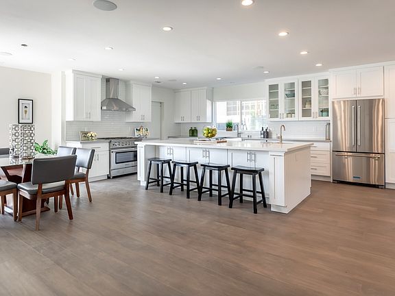 TURNKEY Entertainers dream! Impeccably remodeled & reimagined ranch home w/ a fantastic floor plan in coveted Ladera Heights. All new electrical, plumbing, tankless water heater, dual zoned HVAC. The gourmet chef's kitchen boasts a full slab center island with quartz counter tips, professional stainless steel appliances includes a 36" range, a wine firdge & bar sink. The open living space, flooded w/ natural light & airy breezes creates a calming zen vibe that's felt immediately upon entering. An upstairs master suite & downstairs master suite. All four bedrooms w/ en suite & loads of closet space. The private and perfectly manicured backyard offers room for a pool. Audio surround sound on interior, exterior & security cameras. Centrally located.