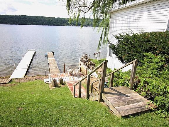 AMAZING OPPORTUNITY! Here is your chance to own your dream property on Conesus Lake! 14' of lake frontage with dock and sitting area! The main house consists of 2 bedrooms and 2 full baths. Upstairs features a bedroom and full bath, along with a large living room and updated kitchen! Downstairs has a cozy family room with fireplace, bedroom, full bath and laundry. The seasonal accessory building in the back of the property has a large living area great for entertaining, bedroom upstairs and full bath. Both structures have decks that have water views! Shed on property is great for storage and there is a fenced area for pets! Call today to make an appointment to see your new getaway!