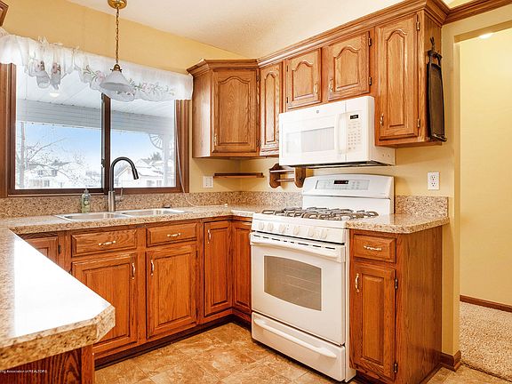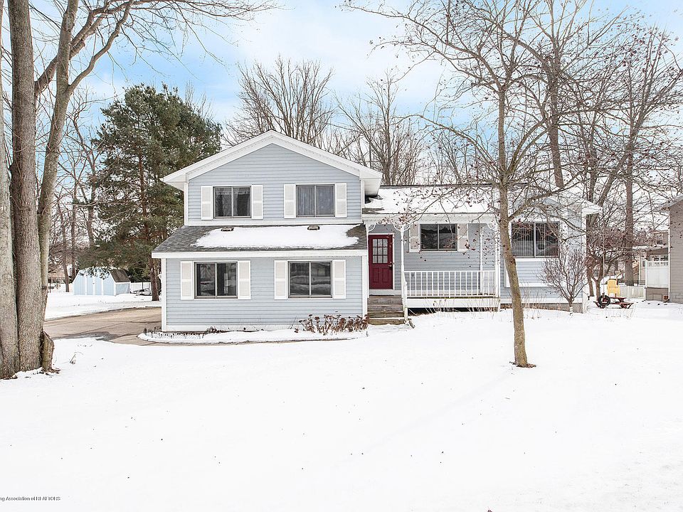 Welcome home to 5915 Horstmeyer Rd in Lansing. This 3 bedroom, 2.5 bathroom home is move in ready and features an updated kitchen with new countertops, sink, and flooring. The main level features beamed and vaulted ceiling in the living room and a dining room which is open to the kitchen. The upper level features 3 bedrooms and 2 bathrooms; including the master bedroom, bathroom suite with his and hers sinks, a whirlpool bathtub, new flooring, and double closets. The lower level features a family room with a gas fireplace and walks out to the back patio, a laundry room, and a half bath. The basement features plenty of built ins and is ready for your finishing touches. Additional features include large shed, huge deck, and more.