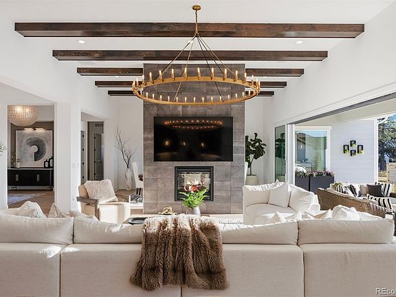 - Description: 12 Foot Beamed Ceilings, Rh Light Fixture, Custom Double Sided Gas Fireplace, 24 Foot Sliding Doors Open To The Expansive Outdoor Patio, Surround Sound
