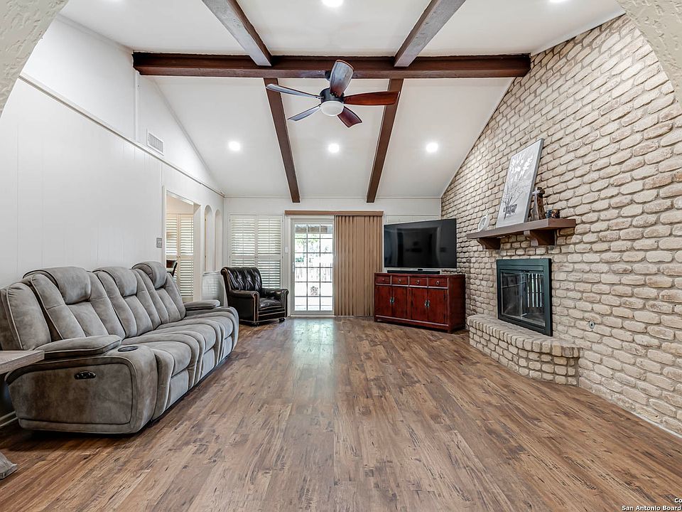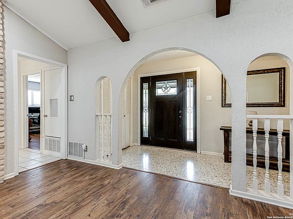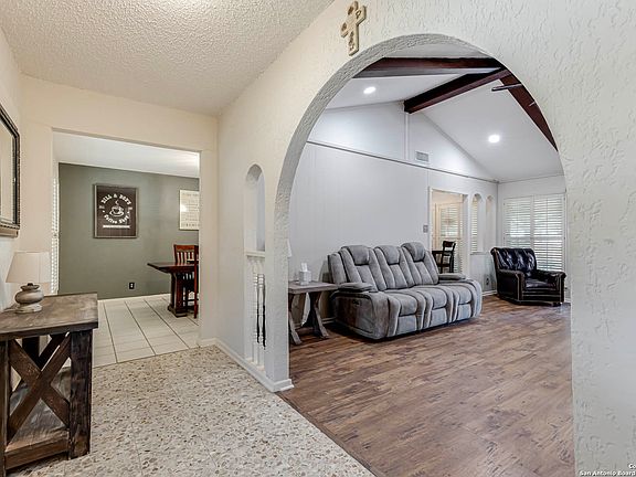 **OPEN HOUSE, FRIDAY, OCT. 24TH FROM 1:00 PM-4:00 PM & SATURDAY, OCT. 25TH FROM 1:00 PM - 4:00 PM** Step into comfort and style with this beautifully maintained 3-bedroom, 2-bath home in Leon Valley. Inside, the open floor concept connects the kitchen, dining, and living areas-perfect for gatherings or entertaining guests. The kitchen features granite countertops in excellent condition, stainless steel appliances, and a layout that invites both cooking and conversation. The living room offers a cozy fireplace as a warm focal point for relaxing evenings, while the master suite provides a private retreat with a walk-in shower and thoughtful design with TWO CLOSETS. Spacious living areas showcase warm finishes and natural light throughout. Outside, discover an entertainer's dream backyard designed for family and friends. Enjoy a HUGE covered patio ideal for barbecues or evening get-togethers, a large open yard with plenty of space for games or lounging, and a separate spacious well built dog run for your furry babies. Surrounded by mature trees that provide shade and an amazing privacy fence, this backyard offers the perfect balance of relaxation and fun. A two-car garage adds convenience, rounding out this home's perfect mix of charm, comfort, and functionality.