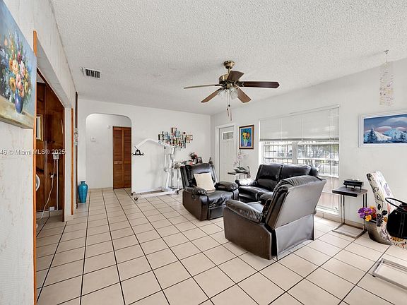 Charming 2-bedroom, 2-bathroom single-family home located just minutes from Coral Gables. This property features spacious bedrooms, a cozy family room, ceramic tile flooring throughout, and a kitchen with classic wood cabinets. Enjoy the convenience of a dedicated laundry room and relax on the covered back terrace overlooking a lovely yard with fruit trees and a storage shed. The circular driveway adds ease and functionality in a quiet, desirable neighborhood. With a little TLC, this home can be customized to your liking!