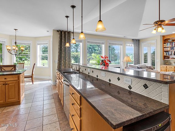 Welcome to 5915 Santo Domingo in Fairfield Harbour, a custom-built 3-bedroom, 3-bath home, 2,765 sq ft of living space, listed below appraised value. The first floor features radiant heated floors in the common areas for added comfort. The spacious kitchen includes both a main sink and an additional bar sink, plus a brand-new wine fridge—perfect for entertaining. A tankless Rinnai hot water heater and nearly all appliances were replaced just last year, bringing modern efficiency and peace of mind. The travertine fireplace with elevated hearth and travertine-accented columns add timeless elegance, while the heated and cooled Carolina room offers year-round enjoyment with peaceful views of the pond, back patio, and maintained green space. Upstairs you'll find a private guest suite with a full bath. A new roof is being installed soon and the sellers have a 2+ year transferrable home warranty to further enhance the value. Designed with wide hallways and high ceilings, this home offers comfort and accessibility. The pool table will also convey if desired. Located in the vibrant Fairfield Harbour community, you'll enjoy amenities such as golf, marina access, walking trails, and more. This home blends thoughtful design, quality finishes, and a serene setting—schedule your private tour today!