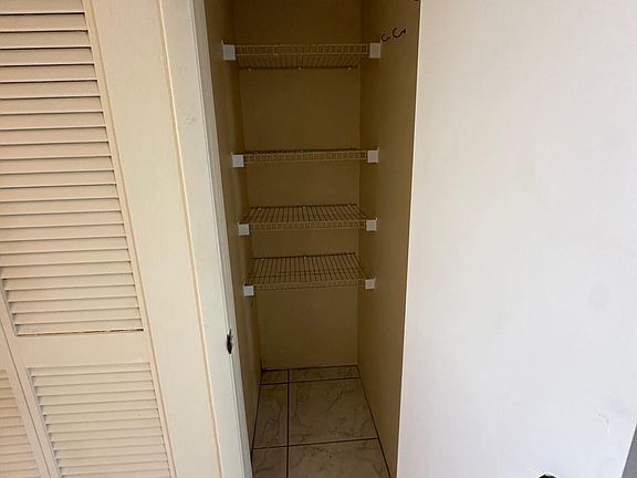 Balcony overlooking private lagoonHurricane shuttersTile flooring