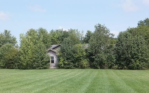 House was started but never finished. Poured concrete basement. Studs and structure have been open to the weather. Buyer will have to determine whether or not structure can be saved or removed. Basement is poured concrete. Five beautiful acres on very popular side of town and road.