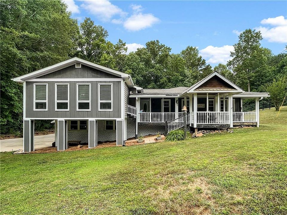 Priced below Appraised value! A homesteaders dream- 5 acres in the heart of Cherokee County with highly sought after school district and 5 car garage for all of your outdoor toys or car enthusiast! This charming country home features a classic front porch that invites you to sit back and enjoy the serene surroundings and wildlife. As you step inside, the open kitchen immediately catches your eye with its stainless steel appliances, sleek countertops, and bright lighting, perfectly blending contemporary convenience with rustic charm. Large windows flood the space with natural light, enhancing the airy and welcoming atmosphere. Each of the generously sized bedrooms offers a peaceful retreat, providing plenty of room for comfort and personalization. The master suite is complete with a wood burning stove and beamed ceiling with a large master bathroom. The basement space can be used as a 5 car garage or in the current state as a home office, flex space or workout area. The possibilities downstairs truly are endless. The fenced in backyard has an extended back porch and small koi pond. This home beautifully combines the best of country living with modern updates, making it a perfect haven for those seeking both style and tranquility. Acreage like this with all the flex space is hard to find - don't let this opportunity pass you up!