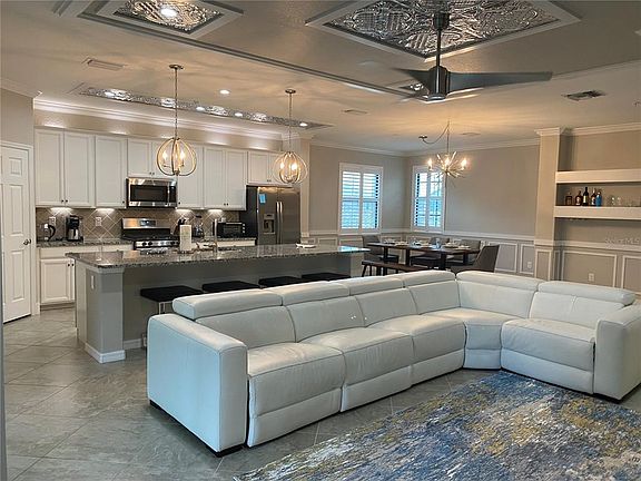 - Crown Molding, Eat-in Kitchen, Kitchen/Family Room Combo, Open Floorplan, Sauna, Solid Wood Cabinets, Split Bedroom, Stone Counters, Walk-In Closet(s)