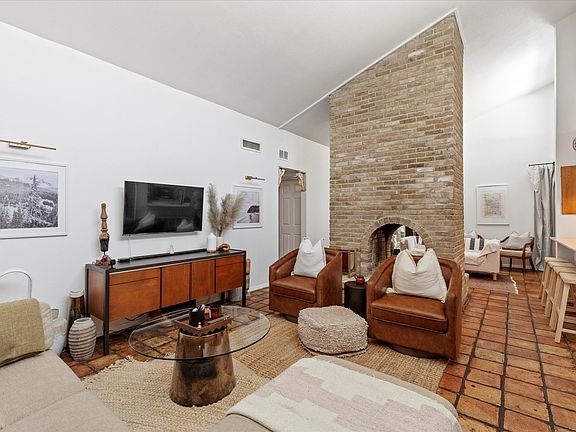 Cozy double-sided wood-burning fireplacePrivate balcony accessCharming dining areaSleek stainless steel appliancesQuartz counter-topsModern kitchenVaulted ceilings
