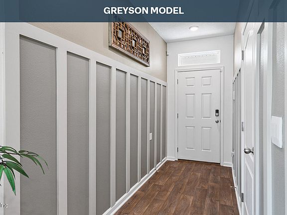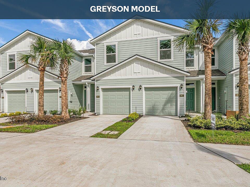 Step into the Greyson, a beautifully designed townhome that maximizes space and comfort. With approximately 1,395 square feet, this three-bedroom, 2.5-bathroom home offers the perfect blend of style and functionality. The open-concept layout creates a seamless flow between the spacious kitchen, dining area, and gathering room—ideal for entertaining family and friends. The large kitchen bar serves as the heart of the home, making meal prep both easy and enjoyable. Abundant natural light from sliding doors brightens the entire space, creating a warm and inviting atmosphere. Upstairs, the primary suite is a true retreat, featuring a spacious bathroom, a vanity, and a large walk-in closet. Conveniently located upstairs laundry adds to the home's practicality. The Greyson isn't just a home—it's a smart investment. With energy-efficient features and thoughtful design, this stunning new construction townhome is available in desirable neighborhoods across North Florida.