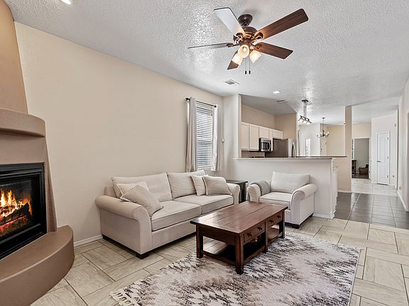 This single-level, four-bedroom home combines comfort and practicality. The open floor plan seamlessly connects the kitchen and dining area with the living room, which features a welcoming gas fireplace. The kitchen is equipped with stainless appliances and stone counters. The primary suite includes a spacious private bathroom, while three additional bedrooms and a second full bath offer convenience. Main living areas have easy to clean tile floors. The two-car garage provides room for vehicles and storage. The exterior features new stucco with a transferable warranty, and outdoor spaces are low maintenance and ready for your landscaping vision. Located on a corner lot, the home offers easy access to Hwy 599, placing shopping and dining destinations within reach.