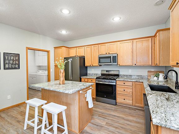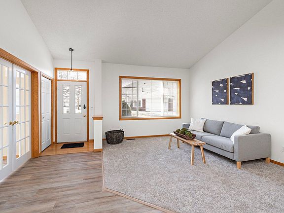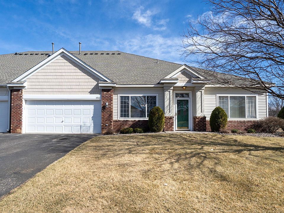 Incredible sunlight with great southern exposure! New LVP Flooring, New Carpet, New Appliances, New granite counter tops, and Fresh Paint. Single Level living with large owner's suite, walk in closet and large bathroom. 36" doors, wide hallways, vaulted ceilings, and a versatile sun-room for additional light and sunny moods. Insulated garage with epoxy floors and attic storage. Rice Creek Park Reserve is a super walking and biking trail system to keep up an active, healthy lifestyle. Roof replaced in 2023. A convenient and proud home base for your next phase!