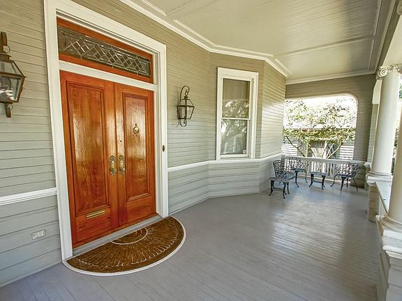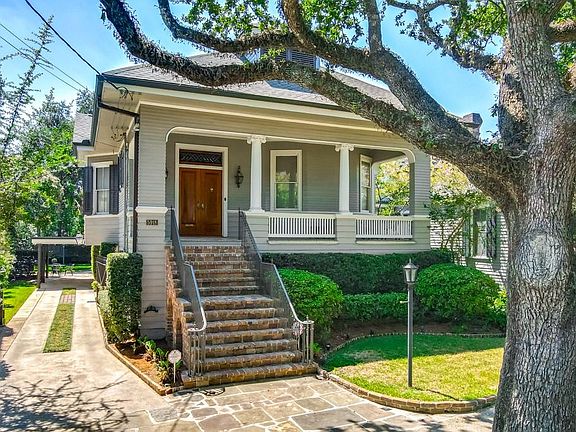 Stately home situated in the heart of the Golden Rectangle on a beautiful tree lined block. Stunning curb appeal w/ mature landscaping and a fabulous front porch. This 4 bedroom/3 bathroom home features historical & formal elements combined w/ top quality, exceptional craftmanship and has been beautifully maintained over the years. Versatile floor plan with gleaming wood floors on main level and substantial + elegant details such as natural cypress doors, brass hardware, crown molding, plaster medallions and pretty window coverings. New roof, operational shutters and abundant accessible storage w/ enormous attic (if addition is desired) plus 1200 sq ft unfinished storage/workshop on ground level. Spacious downstairs area opens to beautiful yard and gardens. Fabulous Oak Tree w/ opportunity for tree swing. Room for a pool. Gated driveway, carport & flagstone patio. A truly remarkable estate.