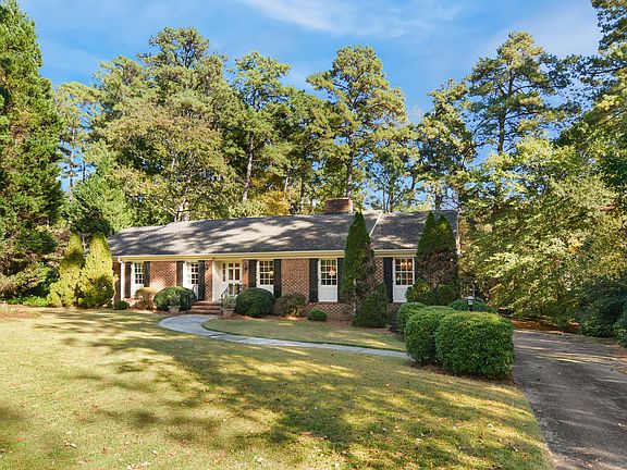 Stunning ALL BRICK ranch with full basement nestled on .71 acre lot in the highly desirable Brookhaven neighborhood. This home blends classic craftsmanship with smart updates. Hardwoods run throughout most of the main floor. Heavy crown molding. Updated windows. The spacious living room centers around a masonry wood burning fireplace. Entertain with ease in the large formal dining room. Unwind in the cozy family room including built-in cabinetry & fireplace. The bright & open eat-in kitchen offers honed granite countertops & tile backsplash. All appliances convey so moving in is a breeze. Primary suite has 2 closets - 1 walk-in with custom built-ins - and a refreshed bathroom with updated oversized tile shower & quartz top vanity. 3 additional bedrooms on the main floor share a beautifully remodeled hall bath featuring heated floor & custom marble top vanity. Downstairs, the options are endless. Approximately 700 sq ft of finished basement includes bonus room with fireplace & 5th bedroom with ensuite bath - perfect for guests. Approximately 1200 sq ft unfinished basement opens the door to future expansion for the new buyer: workshop, gym, media room, storage. Outdoors, the expansive lot offers elbow room and privacy, with space to garden, play or plan your next outdoor project. A fantastic screen porch & adjoining patio overlook a park like setting in the backyard. All of this in a prime Raleigh location ... just minutes to Downtown Raleigh, North Hills, Crabtree and much more.