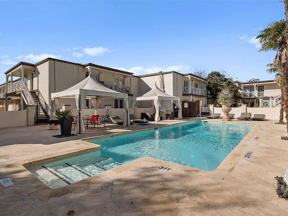 Effortless living meets modern comfort in this beautifully updated 2-bedroom, 2-bath condo, ideally situated in the gated Bella Gardens community. With 1065 sq. ft. of open-concept living space, this charming home features newly installed luxury flooring, completely updated bathrooms, stainless steel appliances, quarts countertops and two conveniently located covered parking spots. The spacious primary suite offers a private retreat with an ensuite bath and walk-in closet. A generously sized second bedroom with completely updated guest bathroom. New paint through out. Fridge, washer and dryer included! Enjoy resort-style amenities including a sparkling pool with water features and multiple grilling stations ideal for entertaining. Located just minutes from SMU, Mockingbird Station, NorthPark Center, and vibrant Greenville Avenue, Bella Gardens combines style, comfort, and unbeatable convenience.