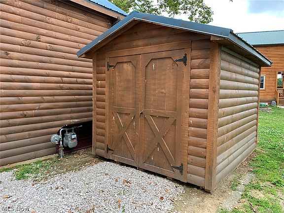 Opportunity awaits at this beautiful cabin located in the Cabins on the Lake Association in Saybrook Township, Ohio on the banks of Lake Erie! Super cute and efficient log cabin home with the perks of being in a lakefront community with direct lake access just a short walk from your covered front porch! This unit has a Primary Bedroom, a Bunk Room with built in bunk beds, and 2 lofts. One of the lofts is accessible by built in stairway and the 2nd loft is accessible by ladder only. Granite countertops in the kitchen and all stainless steel appliances included! This is the perfect vacation getaway, tiny home, or second home! Short-term rentals are allowed in this association, so you can enjoy this home at your convenience and lease it when you're not there on Airbnb or Vrbo! The association fee includes water, sewer, trash, maintenance of common areas, and access to the lake! It's also snowplowed in the wintertime if you wanted to enjoy this cabin year-round. Gas hookup is available if