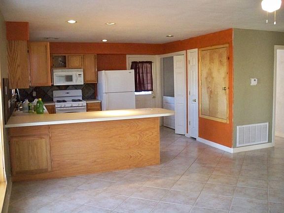 Bare studs remodelOpen floor planOverhead doorTile floorsNice tile bathroomCentral heat and airOver the stove microwave