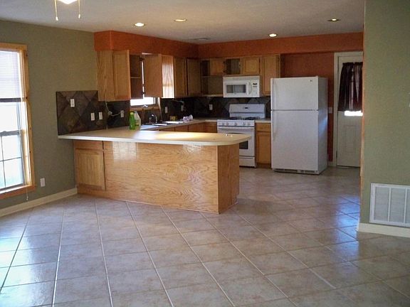 This remodeled house in west Tulsa will be available about November 1, 2025. It has an open floor plan, tile floors and is on a 3/4 acre lot. There is a nice unattached garage with an overhead door.