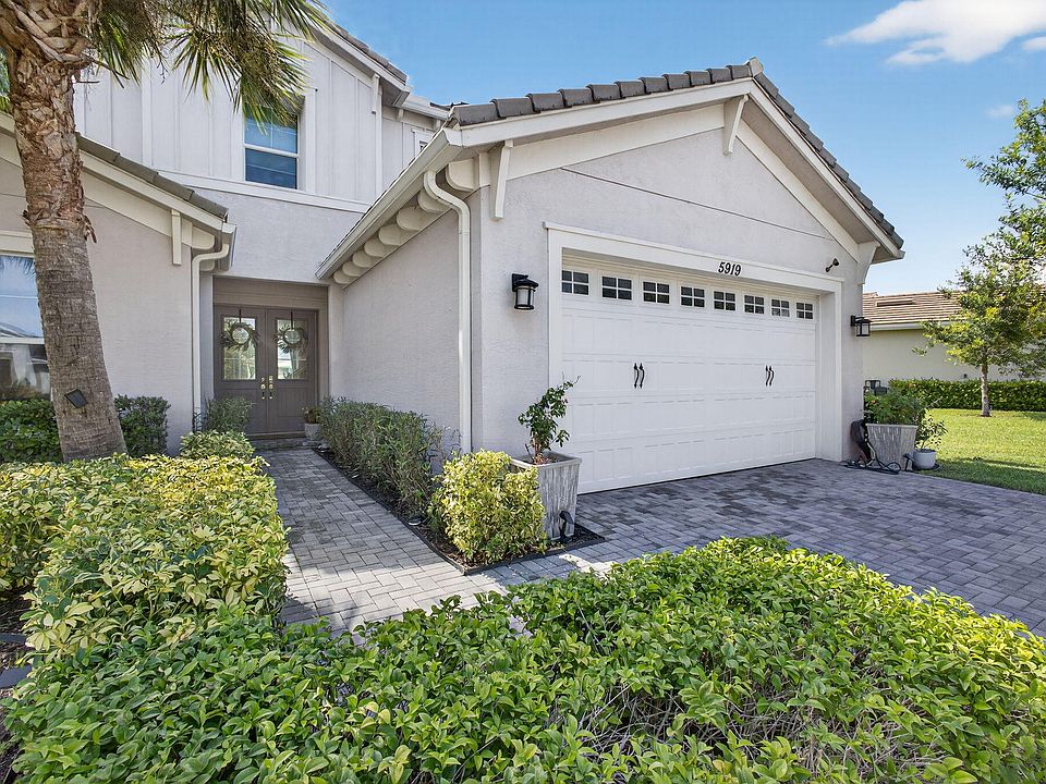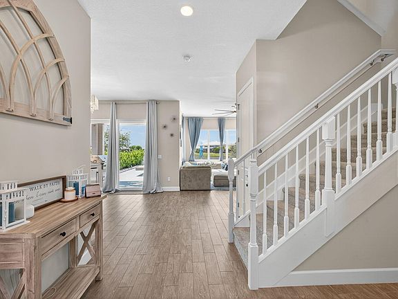 Stunning Lakefront Home with Private Pool in The Hammocks of Westlake! Welcome to this beautifully upgraded 4-bedroom, 3.5-bath, 2-story home perfectly situated on the lake in the highly sought-after community of Westlake. Featuring impact windows throughout, elegant French entry doors, and a pavered driveway, this home combines style, comfort, and peace of mind. Inside, enjoy beautiful lighting throughout, a formal dining area, living room, and family room, plus a large kitchen island with designer lighting above. The kitchen boasts stainless steel appliances and gorgeous gray cabinetry, flowing seamlessly into the spacious living areas with tile flooring throughout. Upstairs, you'll find the laundry room and a versatile loft that could easily be converted into a 5th bedroom. The backyard is an entertainer's dream! Relax in your private pool with sundeck and spa finished in Pebble Tec, cook in the remodeled outdoor kitchen, or simply enjoy the view from the fenced yard overlooking the lake. This home also features solar panels for added energy efficiency and lower utility costs.