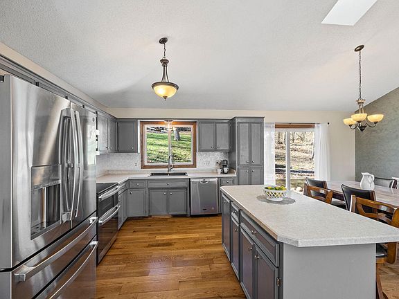 This lovely home located in the highly desirable Country Hollow neighborhood has been meticulously cared for, leaving nothing for the new buyer to worry about. Featuring four bedrooms and three bathrooms, this home is move-in ready and offers updated windows, roof, skylights, appliances, driveway, and much more. The upper level of the home features new oak hardwood flooring, a vaulted main living area, and new kitchen appliances, while also housing three generously sized bedrooms and two bathrooms, including a primary suite. The lower level is filled with tons of natural light and offers ample space for relaxation and entertainment with a large family room, wet bar and game area, full bath, 4th bedroom, and flexible space to use as desired. Outside, the backyard is a serene oasis complete with a patio wired with a 200 breaker box for a future hot tub and plenty of space for outdoor play surrounded by lush trees, creating a truly private retreat. Located in award winning district 196.