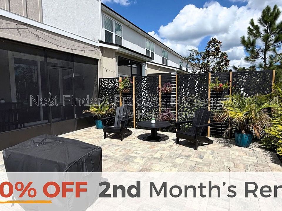 Upstairs, you'll find all three bedrooms, including a comfortable primary suite, along with two full bathrooms and an indoor laundry room with washer and dryer included. Step outside to the screened lanai and extended paver patio overlooking a beautifully landscaped green space with decorative fencing for added privacyideal for relaxing or outdoor dining.