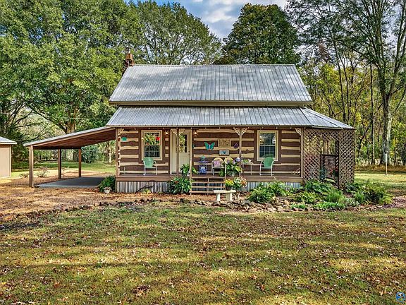 Rare Find! Charming, authentic log cabin in pristine condition on 5 flat acres, plus an additional 11 acres across the street that's ideal for hiking or bow hunting. This cozy 3 bed, 2 bath home features a kitchen with custom hickory countertops and a Vermont Castings wood-burning stove nestled in the living room fireplace. Enjoy morning coffee on the covered front porch overlooking beautiful wooded views. The detached garage is perfect for projects & storage. Whether a peaceful getaway, full-time residence, or investment, this cabin offers it all--just 20 minutes from downtown Huntsville!