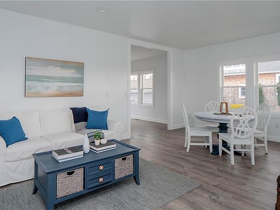 Welcome to 592 Green End Ave, Middletown, Rhode Island, a captivating coastal residence that offers the perfect blend of modern renovation and comfort. Nestled in a desirable neighborhood, this home presents a unique opportunity to experience the quintessential coastal lifestyle of Aquidneck Island. This turnkey property spans 1,100 square feet and boasts 3 bedrooms and 2 bathrooms. The open-concept maximizes space and natural light, creating an inviting ambiance throughout. The kitchen features quartz counter tops, ample counter space, and a convenient island. Prepare delicious meals while engaging with family and guests in the adjoining living and dining areas. The outside of the home features cedar impression vinyl siding, a welcoming front porch and off-street parking plus a detached garage for storage. Don't miss out on your opportunity to own this completely renovated beach bungalow.
