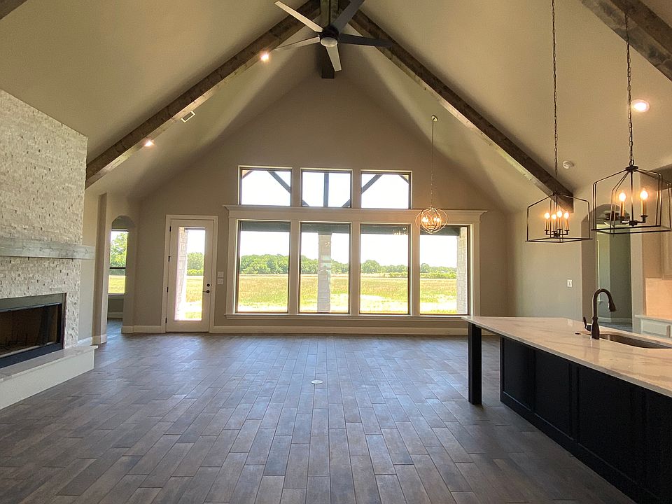 Open floor planUpgraded quartz countertopsGame roomVaulted ceilingsSpacious roomsBarn doorsWalk in pantry