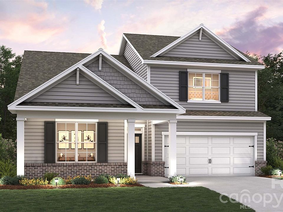 The Ashley is a two-story home offered at Westport in York, SC. This new two-story plan offers four bedrooms, including one on the main level, as well as three bathrooms and a two-car garage.
