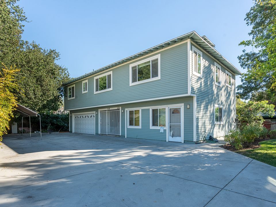 This charming upstairs unit features 2 bedrooms and 2 bathrooms, a laundry room, and a spacious living room perfect for relaxing or entertaining. The kitchen is beautifully appointed with granite countertops and cherry oak cabinets, offering both style and function.