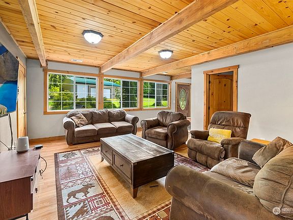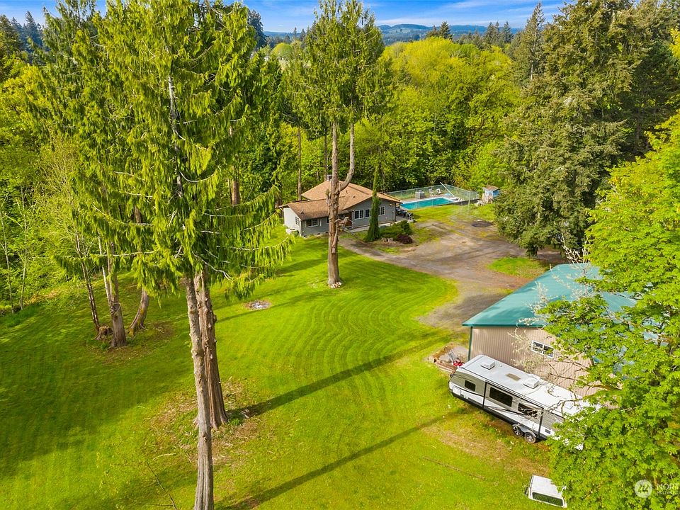 Discover your dream home nestled on 4.99 acres, a perfect blend of comfort & luxury! Featuring 3 spacious bedrooms, including a main-level primary suite with a cozy fireplace and walk-in closet. With 2 bathrooms, inviting living & family rooms, a dining area to host memorable dinners, and a kitchen with a central island & quality cabinets. Admire beautiful woodwork throughout and enjoy a heat pump A/C for year-round comfort. Enjoy the outdoors on the wrap-around deck, take a dip in the pool or work in the 48x36 shop. Minutes from I-5 and shopping, it's centrally located between Seattle and Portland, offering privacy amid partially wooded surroundings. Your dream home awaits!