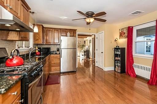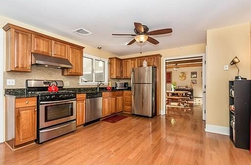 Huge price reduction! Pristine condition and great location! This charming and spacious home has a wonderful open flow and boasts an updated kitchen with stainless steel appliances, granite countertops and adjacent laundry room. Screened in deck off the kitchen overlooks the huge, flat and private back yard with tranquil fire pit and perennial gardens. Two gorgeous bathrooms! The house has great Architectural Details throughout like Beamed Ceilings, Bow and Picture Windows, Fireplace with new Gas Insert, Hardwood floors along with Central A/C, New Windows, Remotely Programmable NEST Thermostats and Hardwired Ethernet for better internet performance! Two Car Garage and parking for 4 more in the driveway. Electric fence in backyard. Tucked away in a residential neighborhood yet seconds from Highways, Grocery, Hardware, Shopping and Entertainment at the Loop. A beautiful mix of modern and vintage. A wonderful home and a great value. Come see.