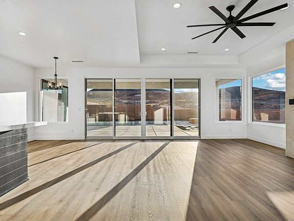 Discover your dream home at The Ridge at Zion Vista, where modern design meets breathtaking views of Pine Valley Mountain. This stunning home is filled with all the upgrades and thoughtful details to elevate your lifestyle. Step inside to a gourmet kitchen with a sleek backsplash and Bosch appliances. The open-concept floor plan is complemented by upgraded carpet&flooring, creating a warm & inviting space perfect for entertaining or relaxing. Unwind in the spa-like owner's suite with garden tub and large closet. The heart of the home is the living room, where a 16' sliding glass door opens to a spacious patio seamlessly blending indoor&outdoor living while showcasing those incredible Pine Valley Mountain views. This home is the perfect combination of luxury, comfort, and scenic beauty