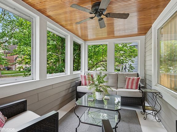 The charm just oozes from this lovingly maintained Dutch Colonial. Screened porch has optional windows for three-season enjoyment. Entryway with closet leads to a large front room with hardwood floors, fireplace and crown molding. Spacious dining room with charming built-ins leads to a cozy family room/play room at the back of the house with sliders that lead to a large deck. The kitchen has a sunny breakfast nook, beautiful cherry cabinets and a pantry closet for all your essentials. Upstairs are three bedrooms including a spacious primary bedroom with double closets. Fenced yard, two car garage. New roof. Lincoln school neighborhood and a stone's throw to the farmer's market, Prairie Path, new deluxe playground, Spring Road and more!