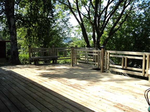 Sunny Lane: meticulously maintained 2300+ sq ft ranch located in mature setting with panoramic view. Main level features recently renovated eat-in kitchen w/oak cabinetry, appliances included, living/dining combo w/stone fireplace, 3 comfortable size bdrms and full bath. Lower level offers pleasant fam/rm w/stone fireplace. spacious 4th bedrm w/walk-in cedar closet, full bath, mechanical/storage area and single tuck-under garage. Lg deck, thermo windows, stone/wood siding, asphalt drive & storage shed.