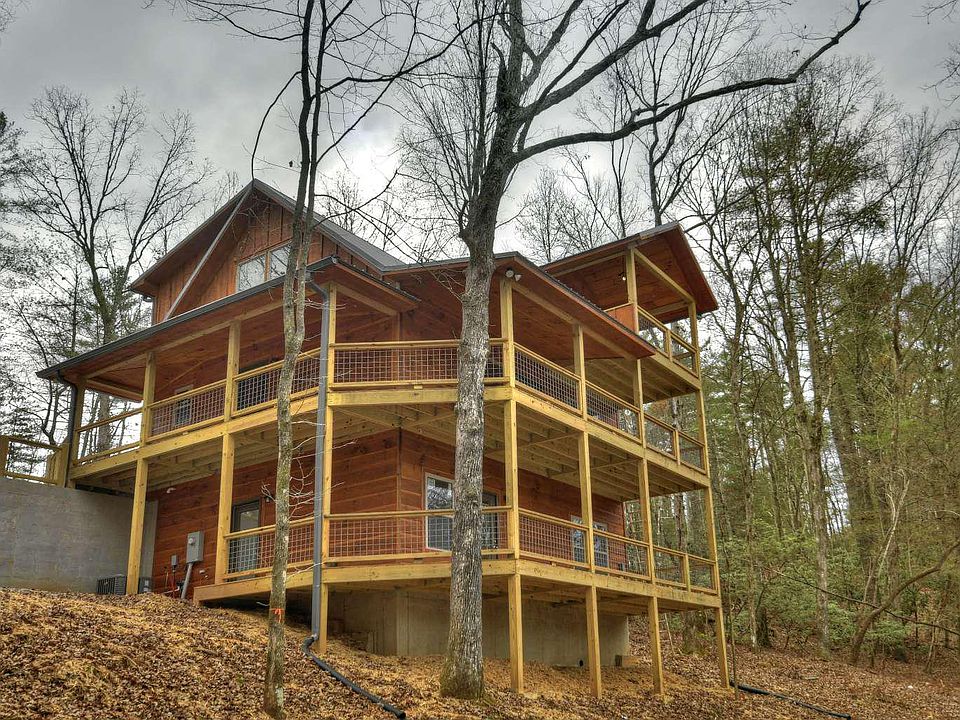 BRAND NEW CREEKFRONT CABIN ON OVER 3 ACRES READY TO MOVE IN!! This 3BR/3BA Cabin has 350' of Creek Frontage & Close Up Mountain Views! This Rustic Cabin Features All Wood Interior, Floor to Ceiling Fireplace, Oak Cabinets, Hardwood Floors, Tile Showers, Two Full Length Back Porches and a Private Balcony off Master, Beautiful Finishes Throughout! Great Layout for Full Time Living or Vacation Rental~ Open Concept Living/Dining/Kitchen, a Bedroom and Bathroom on Each of the Three Levels, Bonus Loft on Upper Level, and Second Living Area in the Finished Terrace Level. Cabin is Situated on a Sprawling 3.07 Acre Lot with Mountain Views and Trout Creek Frontage~ The Lot has a True Park Like Setting~ Surrounded by Woods, the Terrain is Rolling down to the Large, Completely Level and Usable Area Creekside featuring your own Private Oversized Party Deck for entertaining Creekside~ Possibilities are Endless! Located in a Beautiful Area that has an abundance of Wildlife, Area is Surrounded by USFS, and is the Gateway to Miles of Hiking & Biking!