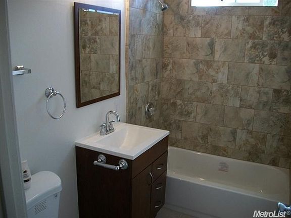 Beautifully remodeled with new roof, newer windows. Has new paint inside and out. Kitchen remodeled with tile floors, nice cabinets, stainless appliances, and granite counters. Has newer laminate flooring and carpet. Bathroom has tile floors and tile shower surround with new cabinet, sink and fixtures. Has central heating. Covered patio and large yard. Oversized one car garage. Must see!