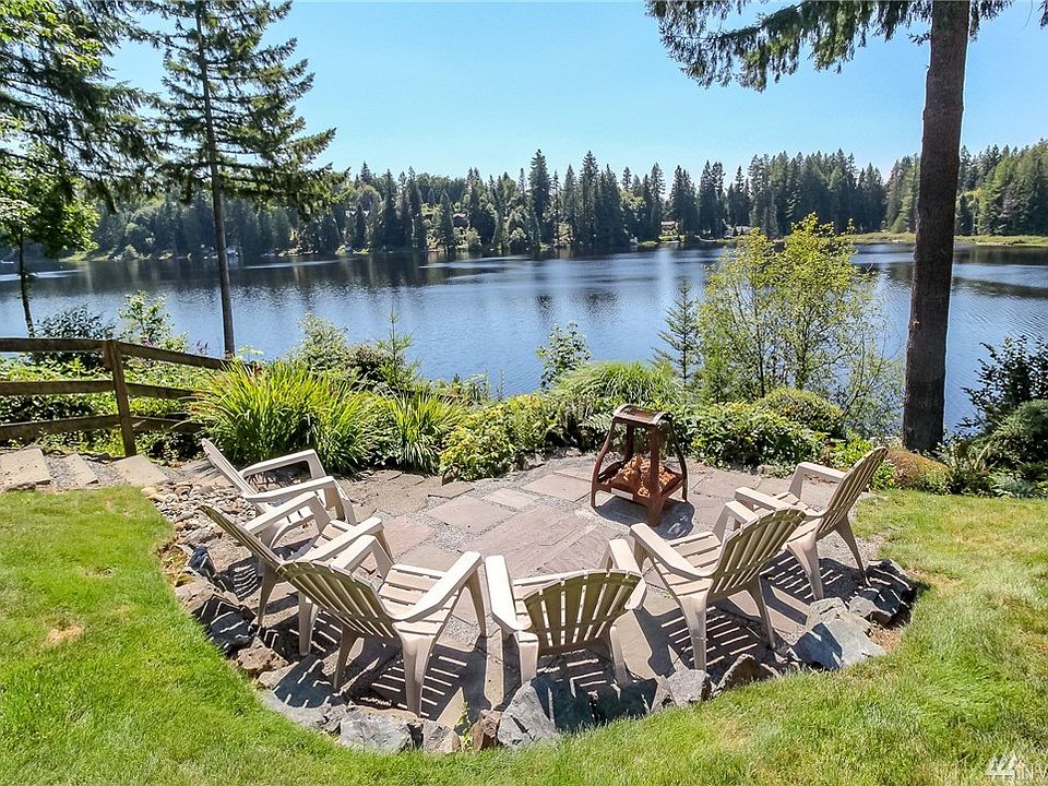 The King of the Lake! Western facing custom built Waterfront Rambler. Set back on almost 1 acre of manicured grounds, providing incredible scenic views! Vaulted ceilings, Gas Fireplace, open concept Kitchen-Dining-Living rooms, all with sweeping views! Skylights for an abundance of natural light. Private dock on 67' wide shoreline, fire pit above for relaxing evenings watching the sunsets. Master suite has lake views through bay windows, large entertaining deck. A once in a lifetime opportunity!