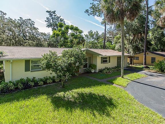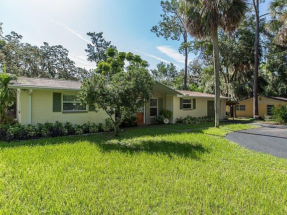 Situated on a spacious HALF ACRE LOT WITH a Magnificent view of the river from your HUGE screened porch. Low maintenance landscaping with abundant natural Floridian foliage surrounds the home. Plenty of room on the LONG CIRCULAR DRIVE for multiple vehicles, RV, ETC. This home sits High and Dry and HAS NEVER FLOODED, IN ANY STORM. This SPOTLESS, SOLIDLY BUILT HOME features, NEWER ROOF, NEWER AIR CONDITIONER, & PLASTER walls throughout. This 3 bedroom, 2 inside bath, split bedroom home features TILE FLOORING IN Living Room, Kitchen and Beautiful WOOD FLOORING in all 3 bedrooms. Both Bathrooms have tub and shower & are updated. Newer Appliances and Kitchen updated. Generous storage with lots of closets and huge walk-in closet in master bedroom. Hunter Ceiling fans throughout. Oversized garage with utility area, additional storage garage to house all of your items, or golf cart. Enjoy fishing off the STURDY, FULLY CAPPED LOT (102') WITH DRAINS & MOORING CLEATS. BRING YOUR BOAT. This home is only a short bike or golf cart ride to scenic downtown Sims Park with all its free local events such as concerts, movies in the park, festivals, & more. This 102' of Riverfront is SELDOM AVAILABLE !!! Plenty of room to add a pool or for expansion. If you are wondering about a larger boat - neighbor to the South has a 30' walk-around with cabin, and states he has no problems. Very Private BAckyard - In Fact House sits back off front street for privacy there too. RV OR BOAT PARKING- NO DEED RESTRICTIONS