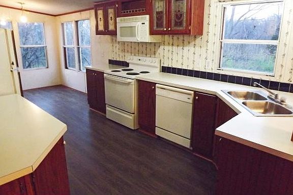 Conveniently located, manufactured 3bed 2bath, split floor plan home on over 3 acres. Home has newer roof, furnace & deck with all appliances included. Over-sized eat-in kitchen w/lots of counter top & cabinets, dining room, very large living room, master bath with garden tub & shower, new flooring in kitchen, master bath & laundry room, freshly painted porch w/new railings. Call today to schedule your showing. No land contracts.
