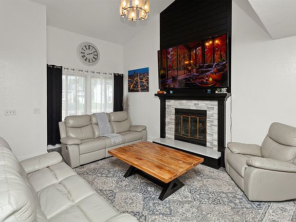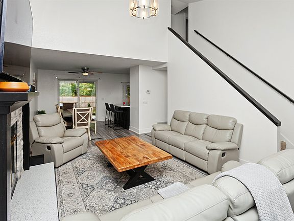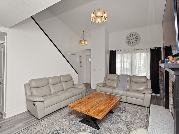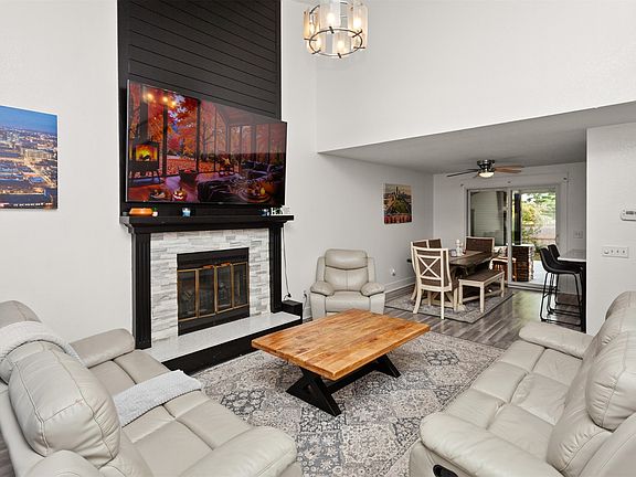 Welcome Home! Stylish 1.5 Story in great location! Home features inviting family room with black shiplap fireplace and soaring vaulted ceiling. Open to dining area and updated kitchen with white cabinets, SS appliances, & breakfast bar. Main Level Primary Bedroom with walk-in closet & 3/4th bath with tile shower. Upstairs three additional spacious bedrooms & full bath. Finished lower level includes another family room or bonus/flex space. You'll LOVE relaxing and spending time in the private, landscaped, fenced-in backyard! Covered patio complete with outdoor bar with stone accents & electric fireplace/stone wall & large TV, plus an open patio with hookup for future hot tub. Updates include new siding, Andersen windows, landscaping, fence, oversized concrete pavers, epoxy floor, interior paint, & renovated bathrooms. Great location, close to shopping, parks, & restaurants. Move-in ready! All information obtained from seller and public records.