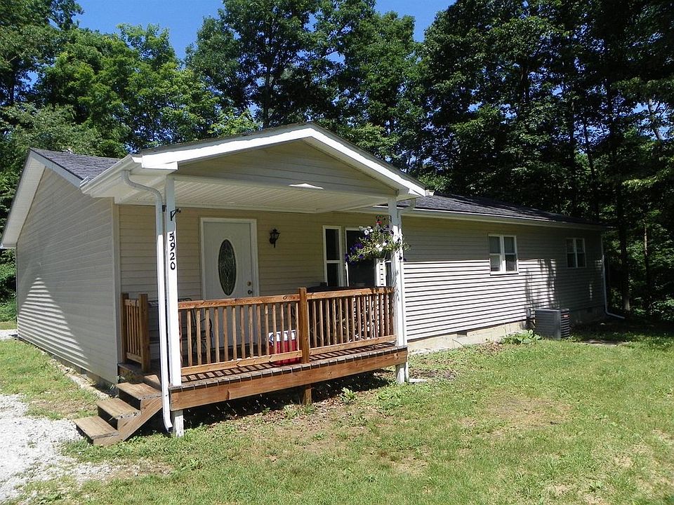 A three bedroom , 2 full bath with an open concept kitchen/ dining/ Family Room. Very large bedrooms with plenty of storage. Located on almost 3 wooded acres in the country with Quad trails. Low traffic area. Small lean to type pole barn with fencing. Move to the country.