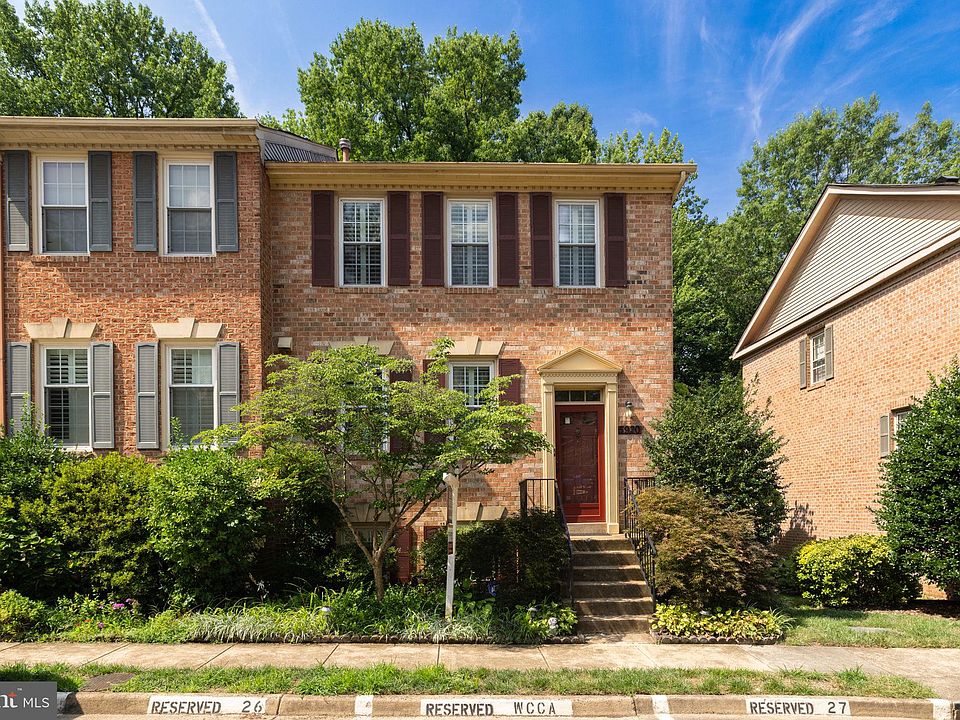 Welcome to 5920 Woodfield Estates Drive, an outstanding brick-front end-unit townhome backing to nothing but trees in Alexandria’s desirable Willow Creek! This 3-bedroom 3 and a half bath model has over 2500 square feet of living space and 2 assigned parking spaces. Gleaming hardwood floors grace the main and upper levels with plantation shutters and modern light fixtures throughout. The eat-in kitchen has recessed lighting, newer cabinetry, wide-plank tile flooring, stainless appliances, sleek granite counters, and a useful island with an overhang for barstool seating. The separate dining room showcases elegant box molding & chair rail, while both the living and dining rooms are enhanced by classic crown molding. The sizable living room also has recessed lighting and a large window that fills the space with natural light. From there, step out onto the oversized deck that spans the width of the home — an ideal spot for relaxing or entertaining with friends. Upstairs, two generously sized bedrooms each feature vaulted ceilings and ceiling fans. The tastefully renovated hall bath includes a chic vanity, tiled floor and floor-to-ceiling shower tile, complete with a luxurious rainforest showerhead. The owner’s suite offers a roomy walk-in closet with built-in shelving, an additional closet for extra storage, and a separate vanity with a sink located just outside the beautifully updated en-suite bath. The walk-out lower level features brand-new carpeting, a spacious third bedroom, laundry room and another nice full bath. The versatile rec room is centered by a cozy fireplace with a brick surround and detailed wood mantel. From here, step out through the sliding glass door to the private lower deck with built-in seating surrounded by mature trees, offering the perfect place to unwind. This fine home is super-close to Metro, all commuter routes, two Town Centers, and a quick hop to Old Town Alexandria!