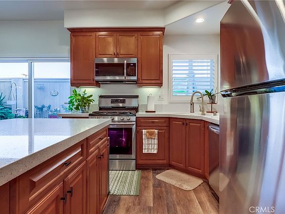 Welcome home! This lovely modern townhome feels like a single-family home, with bright rooms, on-site parking, and a short walk to Heartwell Park. Truly "Turn Key" condition, very fresh inside and out. Floor plan is wide open downstairs, pleasant entry into living room and dining room, with nice laminate flooring. Large island in the kitchen for your friends and family to gather around, great for parties or family time. Stainless steel appliances, gorgeous newer wood cabinets, and ample workspace for creating gourmet meals. All dual-pane, modern windows. Nice fixtures throughout. The enclosed private back patio is large enough for a BBQ, dining area, entertaining, and creating your own garden space. Upstairs features three bedrooms, including a large primary suite with its own spa-like bathroom: Dual-sink vanity, large tub, and separate glass-enclosed shower. Walk-in closets in two of the three bedrooms. Laundry in the upstairs hall, gas dryer. Full hall bath upstairs, and additional half bath downstairs. Extended, large 2-car garage is nicely finished, with room for two cars, plus a craft space, and lots of storage. The home is in excellent, move-in condition, and located in a very desirable area of Long Beach, with transportation corridors nearby, lots of shopping and dining options, and HUGE Heartwell Park just a few steps away: Bike path, walking, baseball, soccer, etc. all nearby, in a gorgeous tree-filled park.