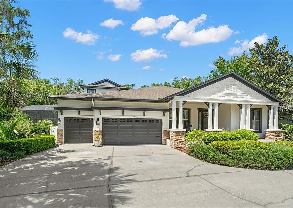 Welcome to this Craftsman Style home built by Homes by Westbay! This former model has loads of upgrades and is situated on 1/3 acre and no back yard neighbors. The black metal gated entry offers an elevated entrance and peace of mind for pets and play. The exterior is newly painted and the well manicured mature landscaping welcomes you onto the covered front paved porch. Inside, 12’ soaring ceilings and CUSTOM wood finishes including crown molding, boxed and coffered ceilings, and board and batten feature walls throughout. There is a living room and office located at the front of the home while the dramatic OPEN CONCEPT includes the kitchen, family room, dining room with CUSTOM BUILT buffet and glass front cabinetry. The gourmet kitchen includes a gas range, wall oven and microwave, level 5 cabinetry and an oversized island with extra storage and casual seating. Four of the five bedrooms are located on the first floor including the primary and it has been completely renovated. This is a true retreat with the optional study added and currently being used as a glamorous make up room and ideal for a nursery, office and more! The en suite bathroom has been UPDATED with floor to ceiling marble and his and her separated vanities. Shiplap is another recent CUSTOM upgrade as well as a claw foot tub and chandelier. There are two spacious bedrooms that share a full second bath with dual sinks and a separate tub/shower allowing for multiple use at the same time. There is a fourth bedroom also located on the first floor and adjacent to a third full bathroom which has access to the pool. This can be ideal for an in-law situation and your out of town guests as it offers privacy. Upstairs is the bonus room currently used as a man cave but ideal for any purpose including a game room or an additional option for an in-law with the 5th bedroom and 4th full bathroom. The outdoor space creates a vacation while being home with an outdoor kitchen, fireplace and mature landscaping that creates privacy while enjoying the private pool and spa. There is a sun shelf with multiple bubblers, paved decking and a two story cage. Parking is no issue with this 3 car garage, oversized driveway with turnaround and median strip parking. This stunning home’s additional features and updates include hurricane grade windows, newer HVAC (2019), new water filtration system and water softener (2019), two surround sound speaker systems, updated lighting, boutique style custom closet in primary bedroom, hardwood flooring, plantation shutters and an entire wall of windows offering a peaceful view! Located in the sought after Garden District with 'A' Rated on-site schools and walking distance to Park Square where you can enjoy shopping, dining, water parks, interactive fountains, physician's office and the Farmer’s Market! The community amenities include the Resort-Style Pools including Aquatic Club, fitness, basketball, tennis, miles of walking/biking trails, movie theater, playgrounds and more!